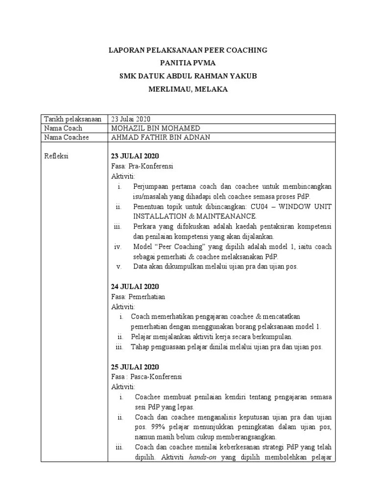 Peer coaching merujuk kepada strategi sistematik untuk memerhatikan pengajaran guru lain menggunakan kitaran prakonferensi, pemerhatian dan pascakonferensi. While the same essential premises underpin each form, there are also some key differences, . Reflection, and coaching are the subject of consultation. Not only does having a peer coach empower people to learn new skills, it can also accelerate learning. But peer coaching, the best we can expect is that 5 of. Programmes manual, and the main one is to implement plcs in the schools.